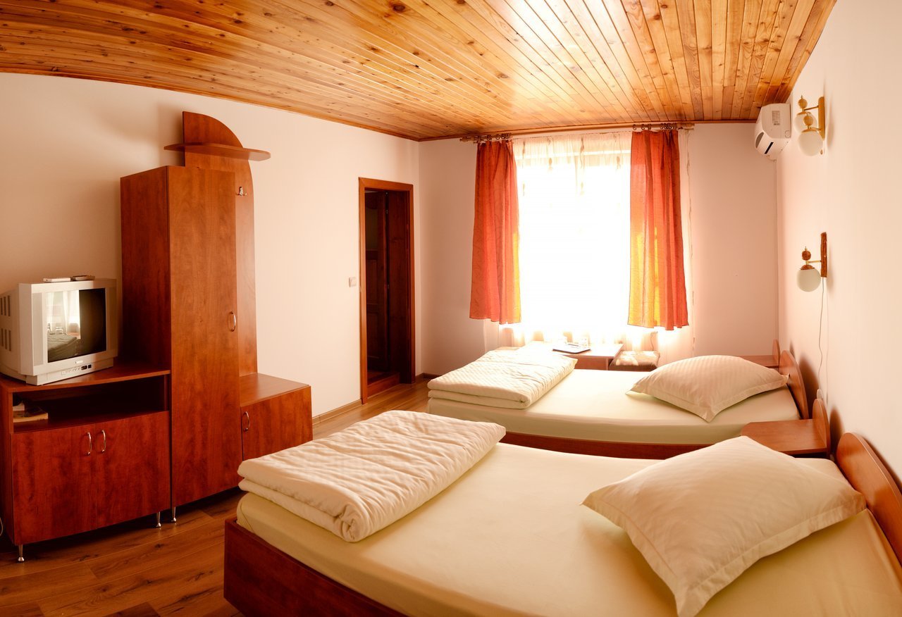 Camera dubla twin are o suprafata de 14 mp, detine doua paturi single de 90/200 cm, cu vedere spre gradina.