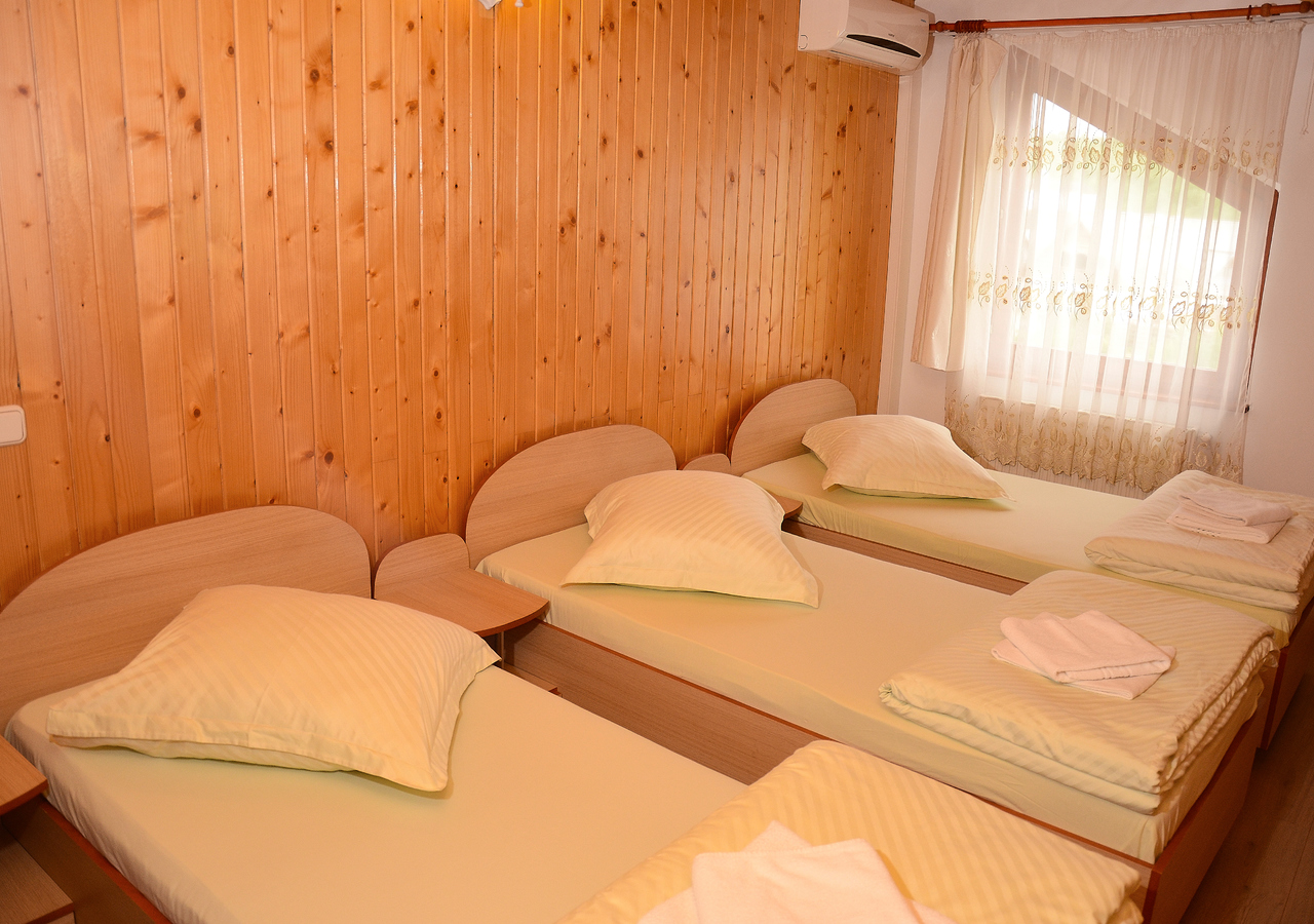 Camera tripla are o suprafata de 16 mp, detine trei paturi single de 90/200 cm, cu vedere spre Cheile Turzii.